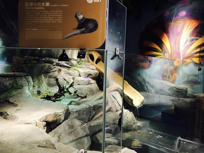 长鼻浣熊筑巢在树洞内,主要在夜间行动,冬天会在树洞中过冬。在冬日也能在场馆内寻找到它的身影。一只长鼻浣熊“北京瘫”式地靠着玻璃而坐,优哉游哉地挠着痒痒,憨态十足。此外,属于国家重点保护野生动物亚洲小爪水獭也被搬到了场馆中,它是世界上最小的水獭品种。据说,它与人类一样过着“一夫一妻”制的生活。