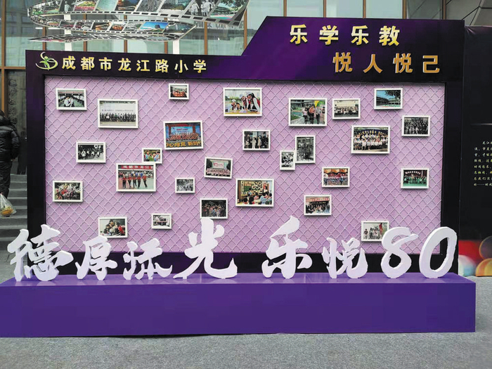 照片墙反映了龙江路小学80年乐学乐教、悦人悦己的历史