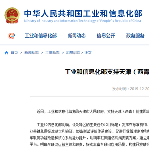 原标题:获工信部支持,天津(西青)将创建国家级车联网先导区