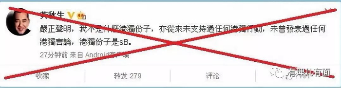 可黄秋生没想到,他的言行被推上舆论风口,引起轩然大波,一时间千夫所指。但不得不说“黄老邪”果然为人处世极为圆滑,一看风头不对,立刻在微博连发多条声明,否认“港独”立场,他辩解称“我不是什么港独分子,亦从来未支持过任何港独行动,未曾发表过任何港独言论,港独分子是SB”。