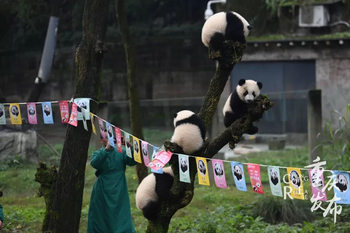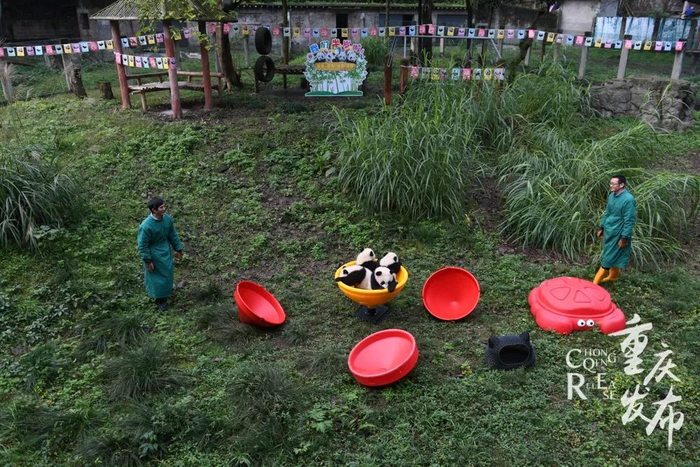 萌化了!重庆两对双胞胎熊猫宝宝上“幼儿园”