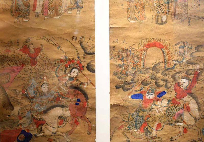 展览集中展示了83件珍贵的杨家将题材传统年画,有忻州当地的,也有天津杨柳青的,其中包含40余件晚清民国时期的年画精品。除此之外,还有忻州当地杨家将题材的剪纸、刺绣作品,以及来自陕西华县的皮影作品,向观众生动地讲述杨家将的故事。