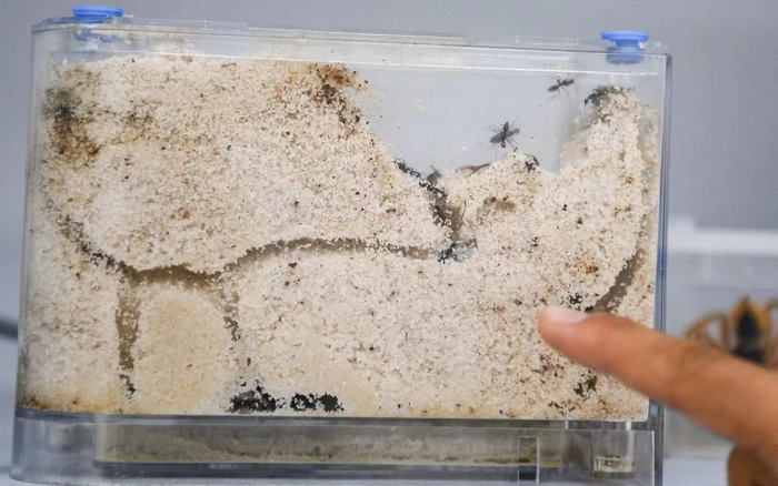 石探记团队搭建的人造蚁窝,让孩子观察蚂蚁的生活习性。