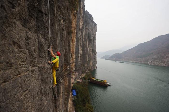 更多地方开始关注攀岩项目的效益。因为这场赛事,重庆奉节又一次出现在公众视野。瞿塘峡激荡了千古文人墨客诗情的江水如今缓缓流淌,历史名城和极限运动在这里交融。赛事主定线员谢卫成介绍,攀岩线路和岩壁上的石刻最近处只有3米。