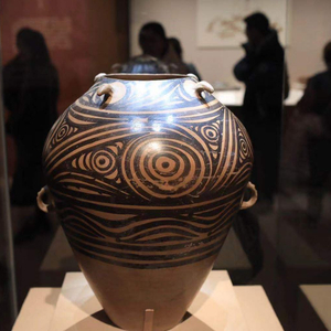 展厅中心位置展出了一件马家窑类型的漩涡纹四系罐,由国家博物馆馆藏。罐子表面大部用黑彩饰以大小不等的漩涡及水波纹,其流畅的线条与精美的构图,使其成为马家窑文化的代表作,被誉为“彩陶之王”。