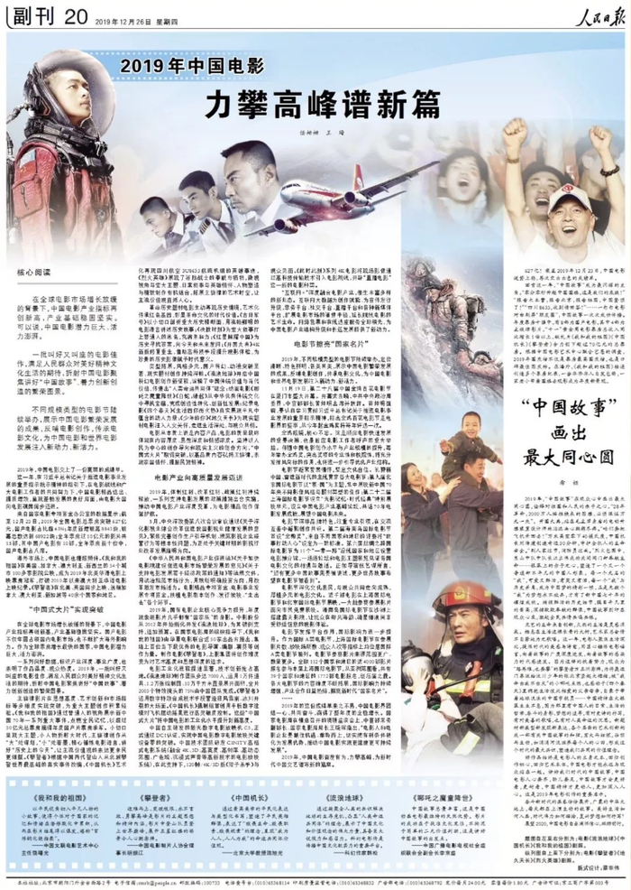 2019年,中国电影奋发有为,力攀高峰,为新时代中国文艺谱写新的篇章。