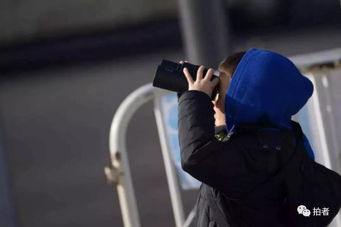 △ 北京天文馆,虽然太阳被云雾遮住,但许多市民仍然排队通过天文望远镜观看日偏食。摄影/新京报记者浦峰