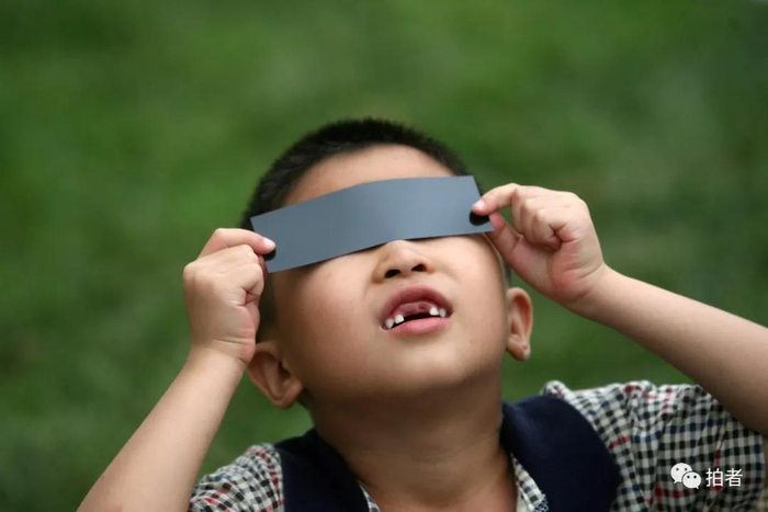 △ 东花市北里,市民透过X光片观看日偏食。摄影/新京报记者王贵彬