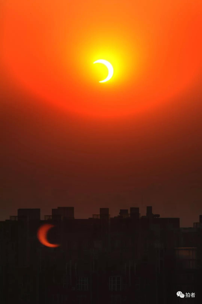 △ 北京市区观测到的日偏食(合成图片)。摄影/李冬
