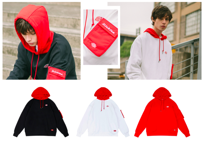 胸前印有鼠年Dickies Logo的卫衣更具街头风,袖子上的挂绳形似老鼠的小尾巴,十分有创意。此外,如果不喜欢帽子,Dickies还推出了无帽卫衣。