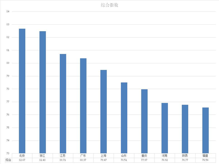 北京、上海、浙江等六省份位列第一方阵,且发展的稳定性很好。