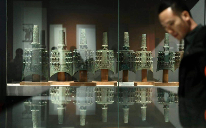 蟠螭纹青铜编钟,蔡昭侯时期(公元前518年-前491年)。摄影/新京报记者 浦峰