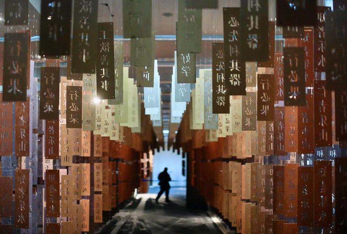 观众走过挂满论语经典的“论语镜墙”。摄影/新京报记者 浦峰