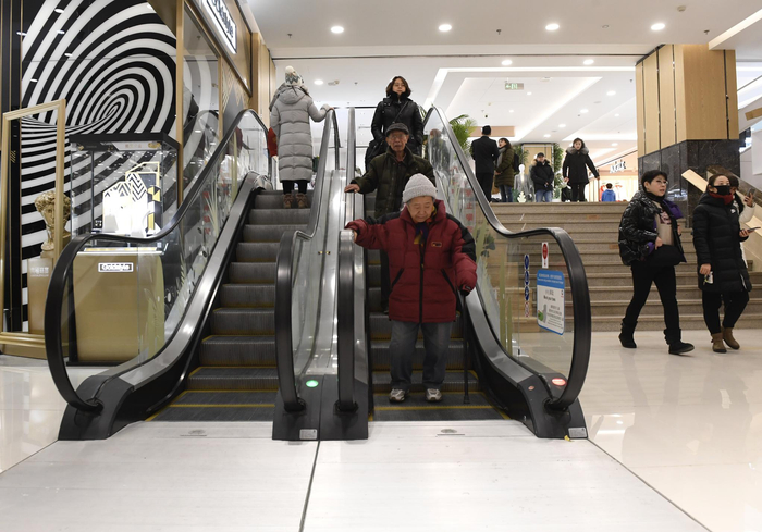 长安商场在一层设置了最短扶梯,大大方便了顾客。摄影/新京报记者 吴宁