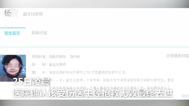 视频-民航总医院被捅女医生不治身亡 行凶家属或曾多部门投诉