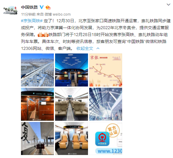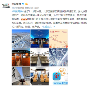 原标题:定了!京张高铁12月30日开通运营 张家口至北京最快56分钟