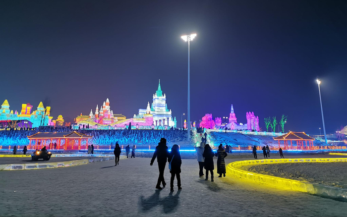 其中,主体21米高的“冰奥运火炬”、157米长的“礼赞七十年”雪雕建筑群以及420米长的冰滑梯皆为同类项目中的“世界之最”,景区目前正在申请吉尼斯世界纪录。