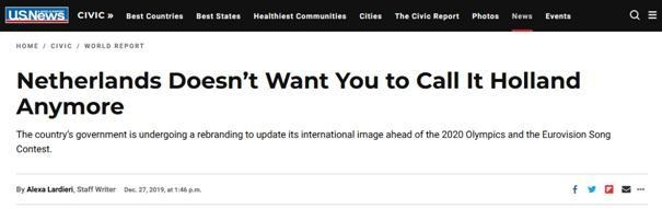 《美国新闻与世界报道》网站报道截图:“‘尼德兰’(Netherlands)不想让你再叫它‘荷兰’(Holland)”。