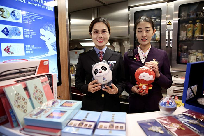 列车上售卖冬奥纪念品。