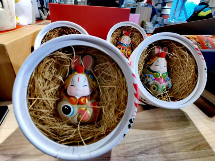 店内售卖的文创产品:憨态可掬的兔儿爷。