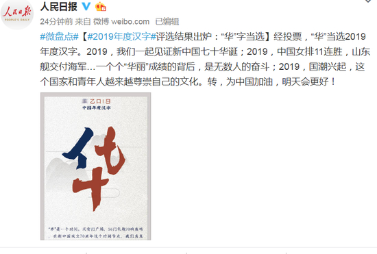 原标题:2019年度汉字评选结果出炉:“华”字当选