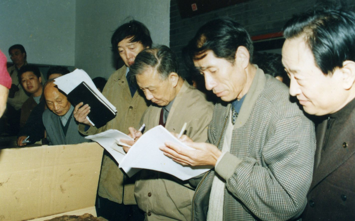 冯骥才和其他专家考察武强木板年画。受访者供图