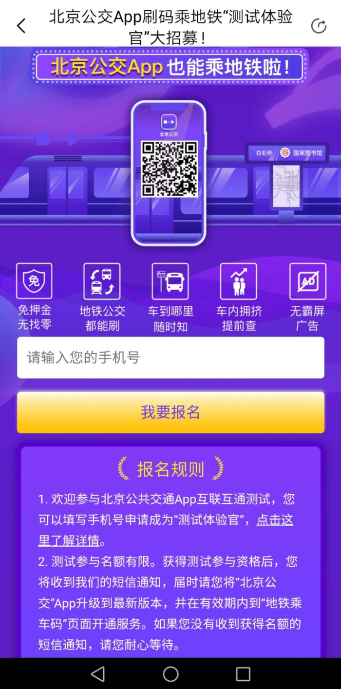 北京公交等APP的申请方式需要预留手机号,在APP内的公告中称,体验名额将逐步放开,成功开通后将给乘客发通知短信。