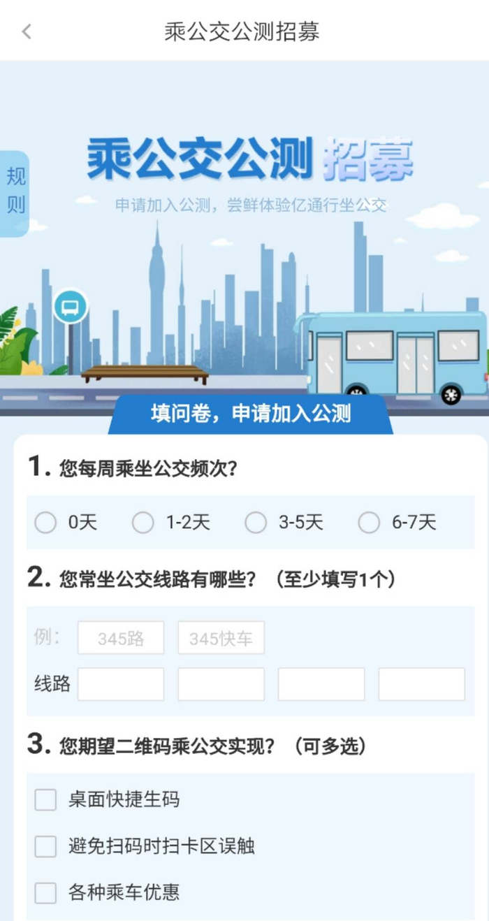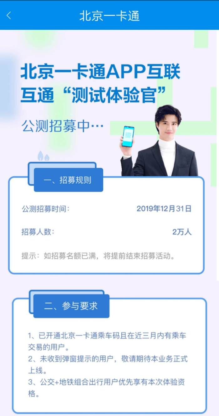 北京公交APP“一码通乘”志愿者招募界面截图
