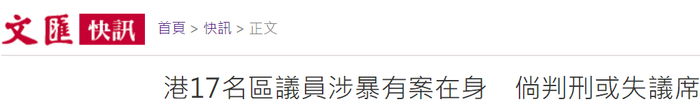 原标题:香港17名反对派区议员涉暴被捕 若判刑或失议席