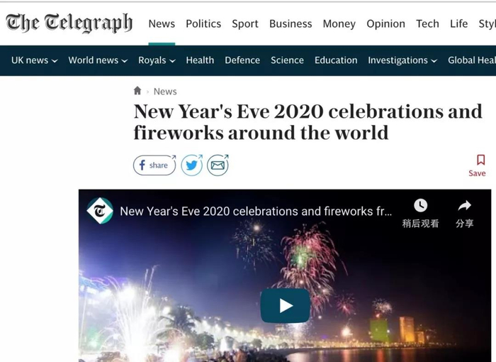 英国主流媒体也报道了习近平主席发表的2020年新年贺词。路透社发表文章称,中国国家主席习近平发表2020年新年贺词时称,中国2019年国内生产总值(GDP)预计将接近100万亿元人民币,人均将迈上1万美元的台阶。澳门的成功实践表明“一国两制”完全行得通,亦希望香港繁荣稳定。