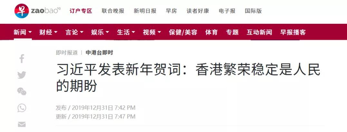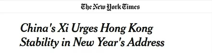 习近平主席发表的2020年新年贺词引发美国主流媒体的关注。《纽约时报》的文章称,习近平主席在贺词中强调了中国香港局势稳定的重要性,指出和平繁荣的环境是香港稳定发展的关键,香港繁荣稳定是香港同胞的心愿,也是全中国人民的期盼。