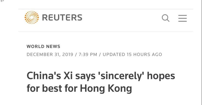 报道指出,中国国家主席习近平在新年贺词中说,真诚地希望香港好,香港同胞好。