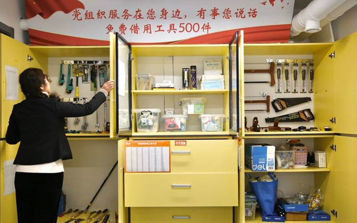 地下一层的“邻空间”有40多个房间,包括“社区服务中心”“快递分拨室”“健康小屋”“图书室”“课时补习室”等,布置干净温馨。居民可在便民中心修鞋、配钥匙、理发、工具借用、磨刀、家政服务……不久前,社区还增设了临时菜站。