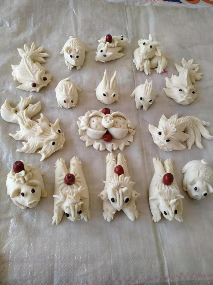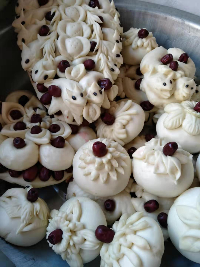 蒸过年用的花馍,每家用的面粉都不低于100斤,制作的数量都在200个左右