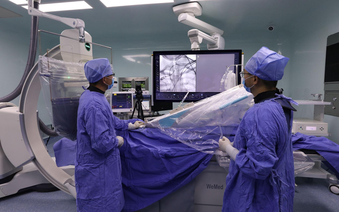 近日,机器人辅助全脑血管造影手术在北京天坛医院举行。北京天坛医院岳朴供图