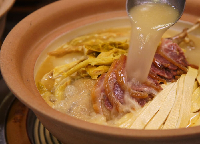 到店是新鲜出炉的菜品,但外卖要经过配送环节,如何保证口味不打折扣?吴国平称,配送时只有炖煮了3个小时的汤底和老鸭,而笋干、千张等配菜分开包装,消费者拿到之后加入配菜炖煮,客单价高的还送砂锅,以保证口味。