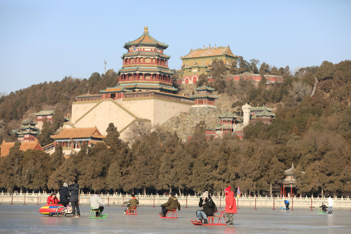 今年,颐和园所有冰上项目均以健身、娱乐为主题,适合青少年与儿童参与,共设单人冰车、双人冰车、冰上自行车、电动冰船、电动逍遥车、冰滑梯、冰鞋速滑等冰上娱乐项目,园方对冰车等设施进行了更新换代,设备总数也增至6000余件。