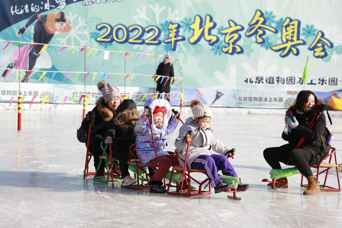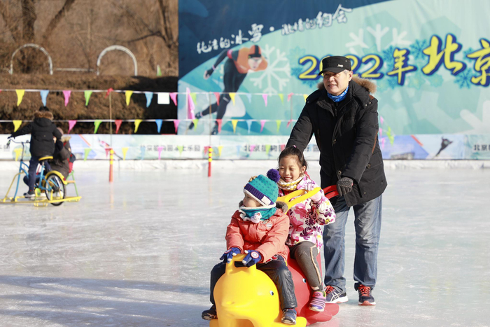 北京植物园冰上乐园开放,游客在冰上游玩。图/北京植物园