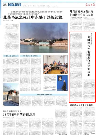 文章最后强调,目前美国等西方媒体片面的报道方式已背离媒体的使命。《纽约时报》、CNN以及其他西方媒体双标的报道是作茧自缚。