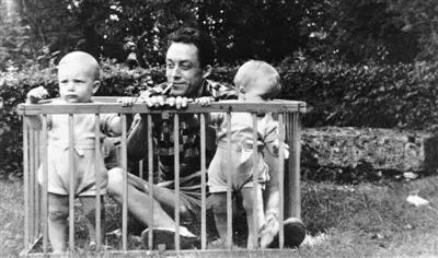 1946年8月,加缪与一对双胞胎儿女在一起。
