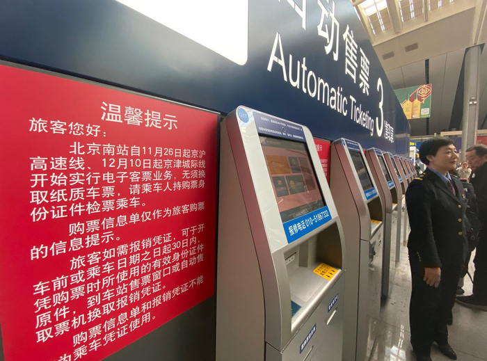 购票:北京南站京津城际、京沪高铁已全部启用电子客票