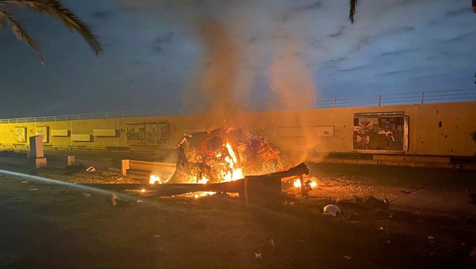 当地时间1月3日早些时候,伊朗伊斯兰革命卫队下属“圣城旅”指挥官卡西姆·苏莱马尼和他的部下乘两辆丰田车离开巴格达机场,在机场货运区附近,两辆车被美MQ-9无人机发射的火箭弹命中,苏莱马尼当场死亡。