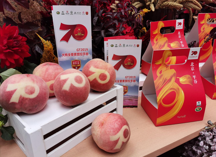 平谷种植大桃有50多年历史了,大桃产业经过不断的品种改良和技术革新。2019年,平谷大桃走进了庆祝中华人民共和国成立70周年招待会。为了培育国庆礼桃,平谷区农业农村局和区果品办公室,系统梳理了几十年来平谷大桃产业发展的关键技术和管控节点,制定了“平谷国桃”全要素管控手册,从整形修剪、花果管理、高光效管理,到土肥水管理、增甜提质和病虫害绿色防控,制定了六大类近百项技术标准。这些标准最终呈现的大桃,有具体的单果重量、含糖量、着色率、成熟度等。