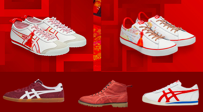 日本潮牌鬼塚虎(OnitsukaTiger)推出了超过11款以红色和白色为主要配色的春节限定鞋款。其中带有中国结装饰的MEXICO 66尤其亮眼,鞋垫借鉴了春联的设计,纯白色鞋身与红色刺绣相互映衬,点缀烟花图案,整体感觉非常喜庆。