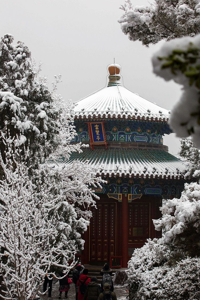 新京报讯 1月6日,小寒。新年的第一场雪让京城银装素裹,市民和摄影爱好者纷纷赶到打卡热门景点,一览京城雪景。景山万春亭、故宫角楼聚集了众多“长枪短炮”。