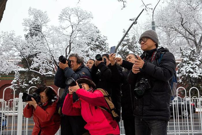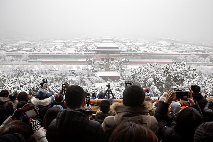 1月6日清晨,景山公园万春亭聚集了众多“长枪短炮”。