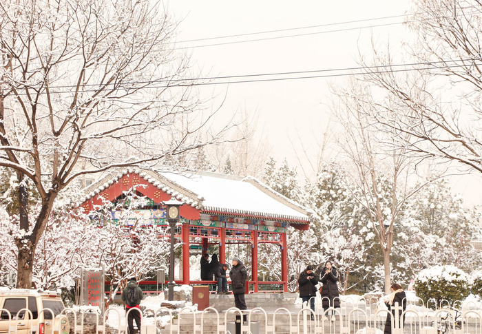 2020年的第一场雪,昨晚如约而至,雪花乘着夜色飘落北京。今天早上,外面已是白茫茫的一片,人们仿佛置身于一座雪城。正如人们说的,北京一下雪,就变成了北平。这个古老的城市,虽然经历数千年,当大雪覆盖了宫殿、街巷、胡同,站在其中,让人感觉一切恍如隔世,还有说不出来的浪漫和诗意。雪中美景,令人流连。