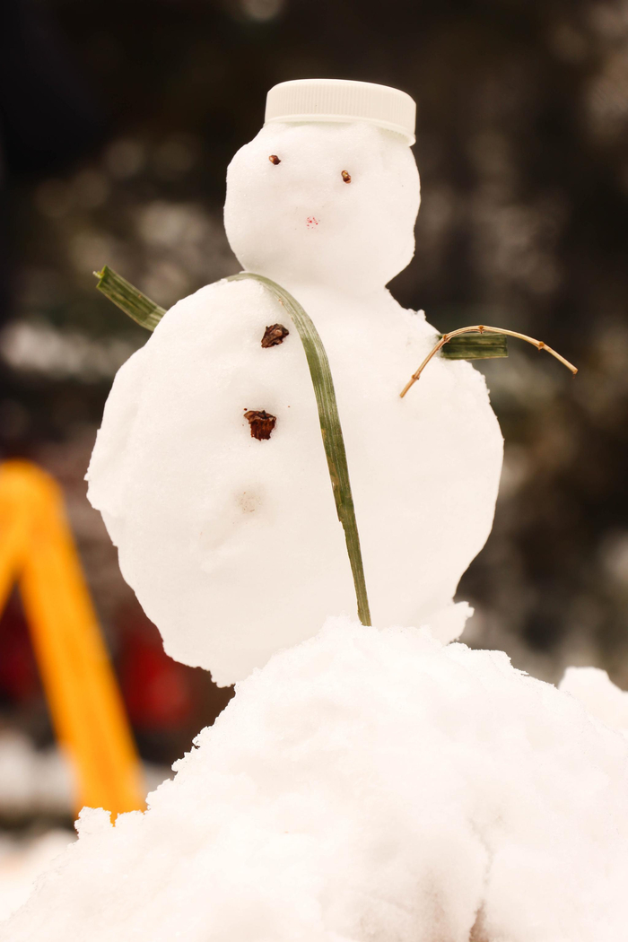 北海公园里不知是谁堆的雪人。