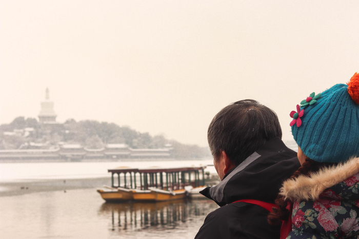 北海公园里远处白塔依稀可见。