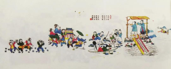 年谣云:“腊月二十八,打糕蒸馍贴花花”,所谓“贴花花”就是张贴年画、窗花等。如今,年画虽不再是家家户户过年的必需品,但随着民间文化的沉淀发展,潍坊年画历久弥新。